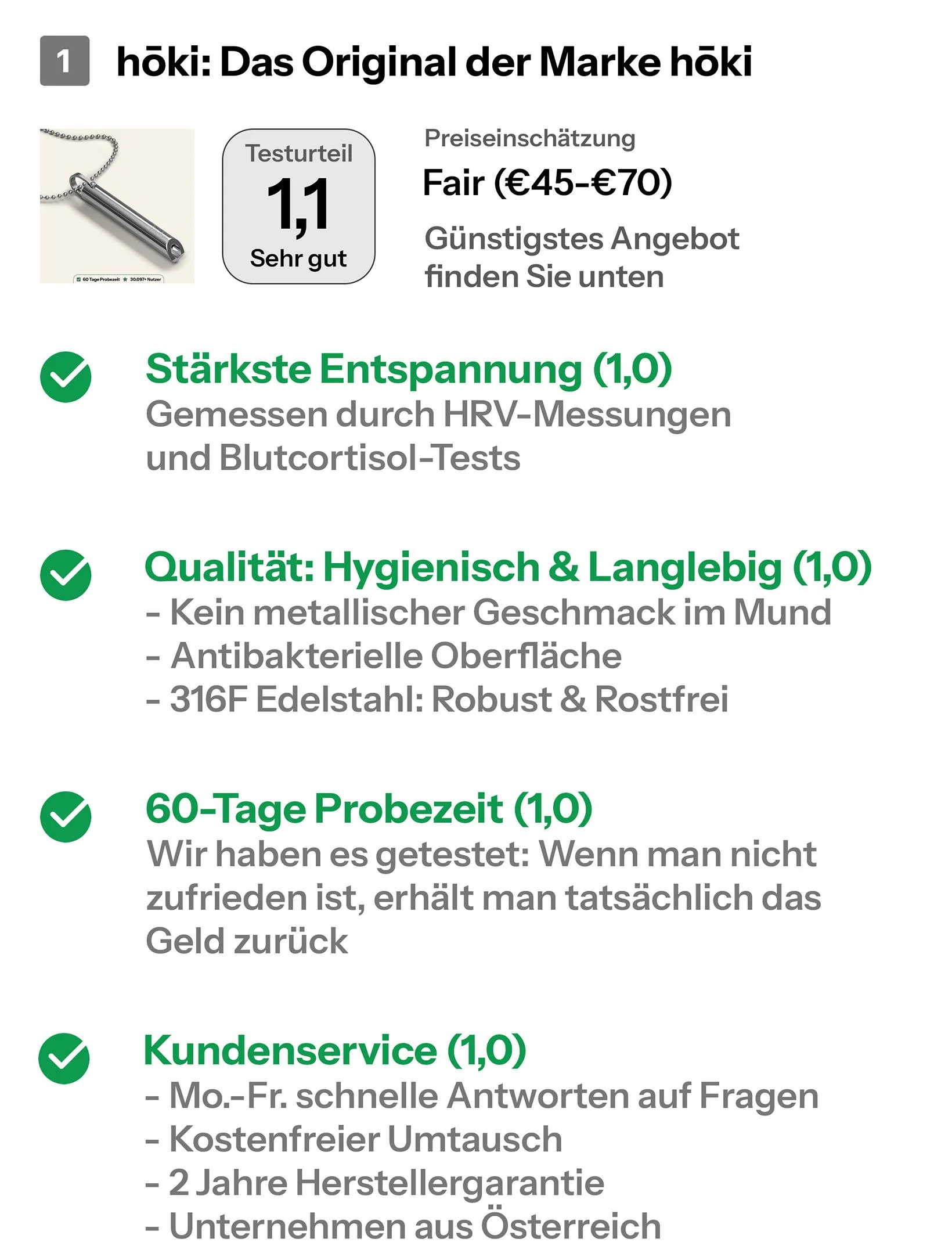 Wer jedoch ein verlässliches, hygienisches und wissenschaftlich abgestimmtes Produkt sucht, für den ist der leichte Aufpreis des hōki Originals gerechtfertigt.